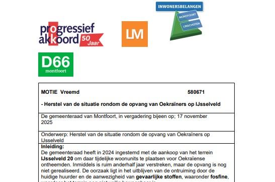 Coalitie en Lokaal Montfoort blokkeren doorbraak IJsselveld 20: eigen fractievoorzitter buitenspel gezet, Oekraïense gezinnen de dupe